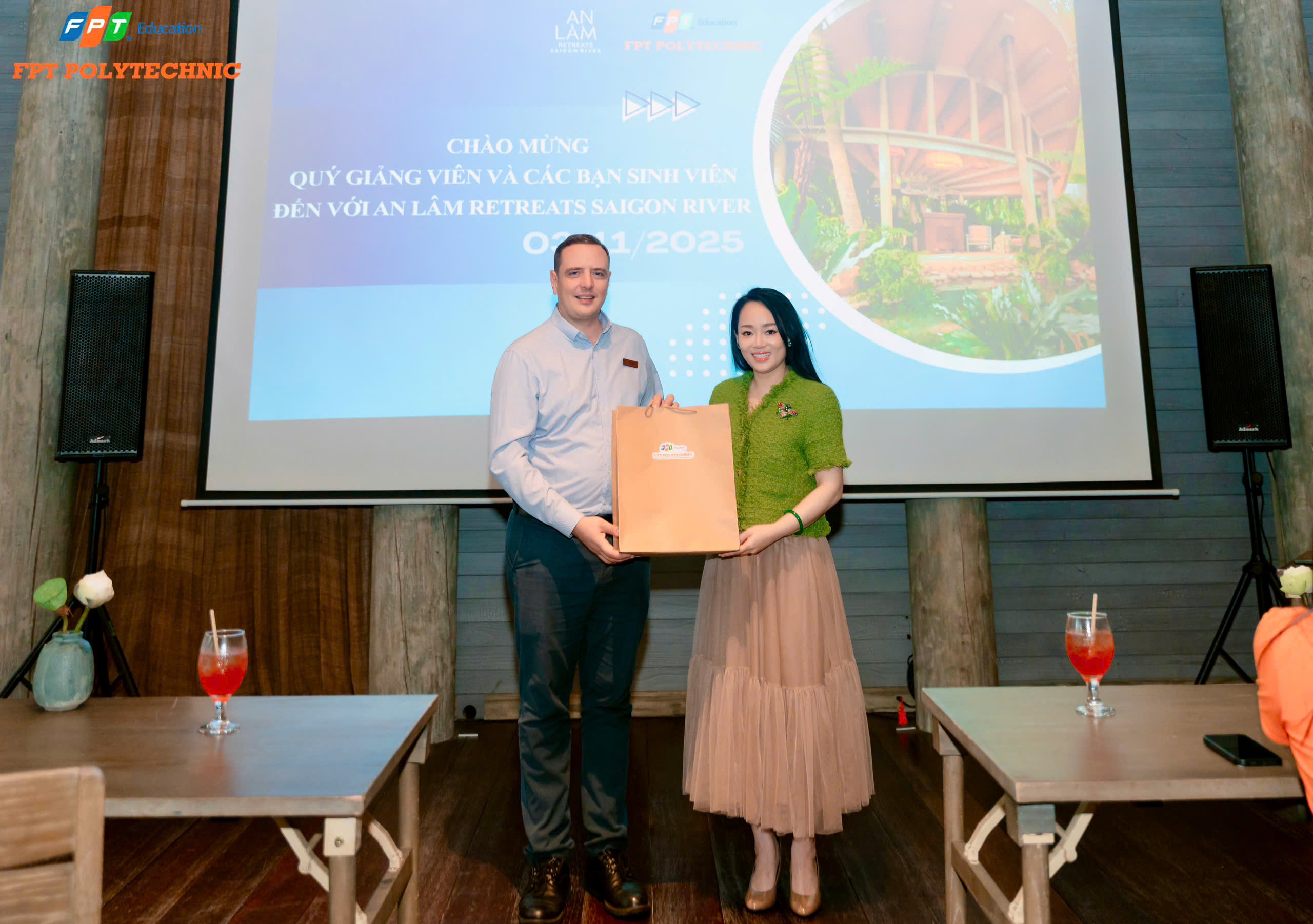 Đại diện nhà trường gửi lời cảm ơn chân thành đến An Lâm Retreats đã nhiệt tình đón tiếp và chia sẻ những kinh nghiệm quý báu; cảm ơn Phòng Quan Hệ Doanh Nghiệp, cô Chủ Nhiệm Bộ Môn và Giảng viên đã tận tâm hướng dẫn, đồng hành cùng sinh viên trong suốt chuyến đi.