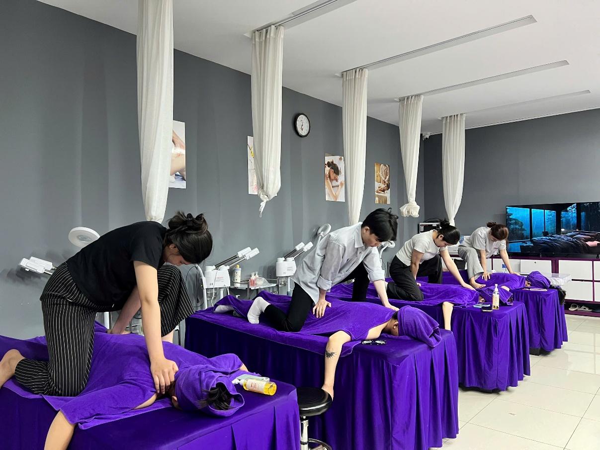 Từ khâu chuẩn bị giường, khăn, tư thế mẫu cho đến từng thao tác tay trên cơ thể khách, tất cả đều được hướng dẫn và thực hành một cách cẩn thận, chậm rãi và đúng kỹ thuật. Học viên không chỉ ghi nhớ quy trình mà còn rèn luyện sự chính xác, khéo léo và cảm nhận trong từng động tác.